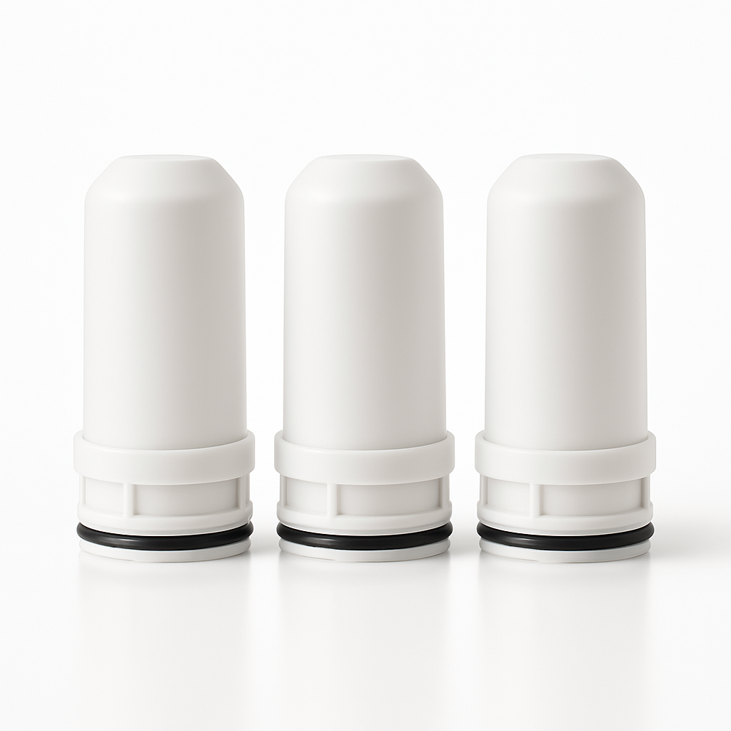 Filtr usuwa również drobne zanieczyszczenia mechaniczne i mikroorganizmy o wielkości nawet do 0,000001 mm, dzięki czemu woda staje się delikatniejsza dla skóry, a codzienne oczyszczanie twarzy — łagodniejsze i skuteczniejsze.